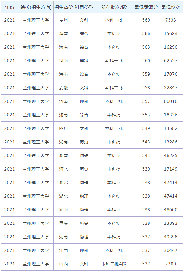 想要報考蘭州理工大學(xué)的同學(xué),都比較關(guān)注蘭州理工大學(xué)今年的錄取分?jǐn)?shù)線,那么,高考多少分可以上蘭州理工大學(xué)呢?蘭州理工大學(xué)歷年最低錄取分?jǐn)?shù)線是多少?下面為大家整理了蘭州理工大學(xué)錄取分?jǐn)?shù)線,希望對大家有所幫助,僅供參考。![]() 蘭州理工大學(xué)錄取分?jǐn)?shù)線 ![]() ![]() 蘭州理工大學(xué)是公辦還是民辦大學(xué)? 根據(jù)全國高等學(xué)校信息可知,蘭州理工大學(xué)是公辦大學(xué)。通常來說,公辦大學(xué)學(xué)費便宜,民辦大學(xué)學(xué)費較貴。 ![]() 蘭州理工大學(xué)簡介 蘭州理工大學(xué)(Lanzhou University of Technology)簡稱''蘭理工'',坐落于甘肅省會蘭州,是中華人民共和國教育部、國家國防科技工業(yè)局與甘肅省人民政府共建高校,國家“中西部高校基礎(chǔ)能力建設(shè)工程”重點建設(shè)大學(xué),教育部“卓越工程師教育培養(yǎng)計劃”、“新工科研究與實踐項目”及“國家大學(xué)生創(chuàng)新性實驗計劃”入選高校,中國政府獎學(xué)金來華留學(xué)生接收院校,全國畢業(yè)生就業(yè)典型經(jīng)驗高校,全國首批深化創(chuàng)新創(chuàng)業(yè)教育改革示范高校,中國人民解放軍后備軍官選拔培養(yǎng)基地,CDIO工程教育聯(lián)盟成員單位,設(shè)有研究生院和國家大學(xué)科技園,東南大學(xué)對口支援高校。 學(xué)校前身是1919年的甘肅省立工藝學(xué)校;1958年,合并組建蘭州工學(xué)院、甘肅交通大學(xué)定名為甘肅工業(yè)大學(xué);1965年,學(xué)校劃歸第一機(jī)械工業(yè)部,將東北重型機(jī)械學(xué)院和北京機(jī)械學(xué)院的水力機(jī)械、化工機(jī)械、石油礦場機(jī)械和焊接工藝及設(shè)備專業(yè)全部遷入,并從湖南大學(xué)、合肥工業(yè)大學(xué)抽調(diào)一批教師來校工作;1998年,轉(zhuǎn)制為“中央與地方共建,以地方管理為主”的院校;2003年,正式更名為蘭州理工大學(xué)。 通過對蘭州理工大學(xué)錄取分?jǐn)?shù)線的了解,大家大概知道了高考多少分可以上蘭州理工大學(xué),以上數(shù)據(jù)源于網(wǎng)絡(luò),僅供參考,大家如果想要了解其他大學(xué)錄取分?jǐn)?shù)線、大學(xué)簡介、大學(xué)排行榜、專業(yè)選擇等內(nèi)容,請點擊訪問:大學(xué)欄目。 推薦閱讀: 新疆大學(xué)錄取分?jǐn)?shù)線 西藏大學(xué)錄取分?jǐn)?shù)線 喀什大學(xué)錄取分?jǐn)?shù)線 石河子大學(xué)錄取分?jǐn)?shù)線 新疆農(nóng)業(yè)大學(xué)錄取分?jǐn)?shù)線 高考多少分可以上塔里木大學(xué) 新疆師范大學(xué)錄取分?jǐn)?shù)線 高考多少分可以上新疆醫(yī)科大學(xué)? 西藏民族大學(xué)錄取分?jǐn)?shù)線 |