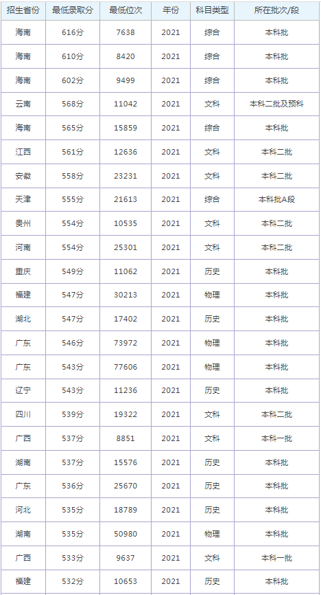 想要報(bào)考南寧師范大學(xué)的同學(xué),都比較關(guān)注南寧師范大學(xué)2022年的錄取分?jǐn)?shù)線,那么,高考多少分可以上南寧師范大學(xué)呢?南寧師范大學(xué)歷年最低錄取分?jǐn)?shù)線是多少?下面為大家整理了南寧師范大學(xué)錄取分?jǐn)?shù)線2022是多少分(含2021-2022歷年),希望對(duì)大家有所幫助,僅供參考。![]() 南寧師范大學(xué)錄取分?jǐn)?shù)線2022是多少分? 截止到目前,南寧師范大學(xué)2022年錄取分?jǐn)?shù)線還未公布,如果需要2022年南寧師范大學(xué)分?jǐn)?shù)線的同學(xué),不妨參考2021年南寧師范大學(xué)錄取分?jǐn)?shù)線和南寧師范大學(xué)歷年錄取分?jǐn)?shù)線,希望對(duì)大家有所幫助,如有不同,請(qǐng)以南寧師范大學(xué)官網(wǎng)最新公布的信息為準(zhǔn)。 2021南寧師范大學(xué)錄取分?jǐn)?shù)線 ![]() ![]() 南寧師范大學(xué)是985還是211大學(xué)? 根據(jù)全國(guó)985和211大學(xué)名單可知:南寧師范大學(xué)既不是985大學(xué),也不是211大學(xué)。 ![]() 南寧師范大學(xué)簡(jiǎn)介 南寧師范大學(xué)(Nanning Normal University)坐落于廣西壯族自治區(qū)首府南寧市,是國(guó)家中西部高?;A(chǔ)能力建設(shè)工程(二期)項(xiàng)目學(xué)校,教育部數(shù)據(jù)中國(guó)“百校工程”項(xiàng)目試點(diǎn)學(xué)校,全國(guó)深化創(chuàng)新創(chuàng)業(yè)教育改革示范高校,西南大學(xué)對(duì)口支援建設(shè)學(xué)校,廣西新增博士學(xué)位授予單位立項(xiàng)建設(shè)單位,對(duì)口支援廣西民族師范學(xué)院。 學(xué)校前身為創(chuàng)辦于1953年的廣西教師進(jìn)修學(xué)院,1960年7月更名為南寧師范學(xué)院,1966年7月更名為廣西教育學(xué)院,1979年2月復(fù)名南寧師范學(xué)院,1985年5月更名為廣西師范學(xué)院,2002年12月,南寧民族師范學(xué)校并入,2018年12月更名為南寧師范大學(xué)。 通過對(duì)南寧師范大學(xué)錄取分?jǐn)?shù)線的了解,大家大概知道了高考多少分可以上南寧師范大學(xué),以上數(shù)據(jù)源于網(wǎng)絡(luò),僅供參考,大家如果想要了解其他大學(xué)錄取分?jǐn)?shù)線、大學(xué)簡(jiǎn)介、大學(xué)排行榜、專業(yè)選擇等內(nèi)容,請(qǐng)點(diǎn)擊訪問:大學(xué)欄目。 推薦閱讀: 北京大學(xué)錄取分?jǐn)?shù)線 清華大學(xué)錄取分?jǐn)?shù)線 中國(guó)科學(xué)技術(shù)大學(xué)錄取分?jǐn)?shù)線 復(fù)旦大學(xué)錄取分?jǐn)?shù)線 南開大學(xué)錄取分?jǐn)?shù)線 同濟(jì)大學(xué)錄取分?jǐn)?shù)線 |