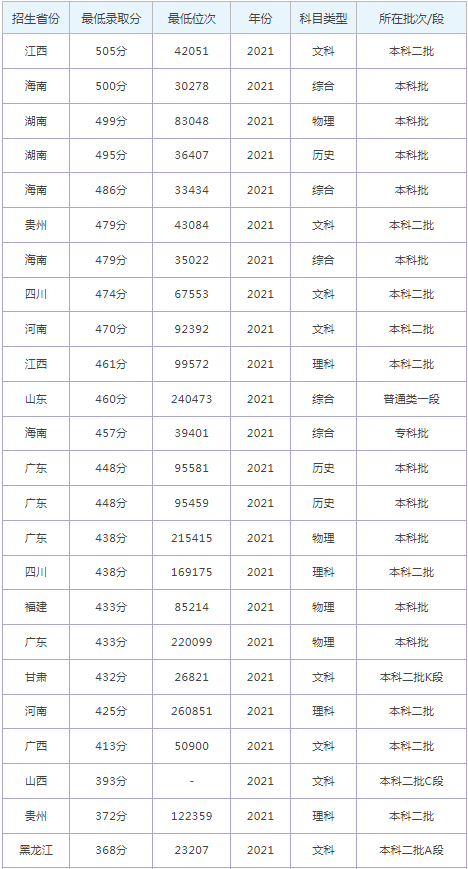 想要報(bào)考廣東理工學(xué)院的同學(xué),都比較關(guān)注廣東理工學(xué)院2022年的錄取分?jǐn)?shù)線(xiàn),那么,高考多少分可以上廣東理工學(xué)院呢?廣東理工學(xué)院歷年最低錄取分?jǐn)?shù)線(xiàn)是多少?下面為大家整理了廣東理工學(xué)院錄取分?jǐn)?shù)線(xiàn)2022是多少分(含2021-2022歷年),希望對(duì)大家有所幫助,僅供參考。![]() 廣東理工學(xué)院錄取分?jǐn)?shù)線(xiàn)2022是多少分? 截止到目前,廣東理工學(xué)院2022年錄取分?jǐn)?shù)線(xiàn)還未公布,如果需要2022年廣東理工學(xué)院分?jǐn)?shù)線(xiàn)的同學(xué),不妨參考2021年廣東理工學(xué)院錄取分?jǐn)?shù)線(xiàn)和廣東理工學(xué)院歷年錄取分?jǐn)?shù)線(xiàn),希望對(duì)大家有所幫助,如有不同,請(qǐng)以廣東理工學(xué)院官網(wǎng)最新公布的信息為準(zhǔn)。 2021廣東理工學(xué)院錄取分?jǐn)?shù)線(xiàn) ![]() ![]() 廣東理工學(xué)院是985還是211大學(xué)? 根據(jù)全國(guó)985和211大學(xué)名單可知:廣東理工學(xué)院不是985大學(xué),也不是211大學(xué)。 ![]() 廣東理工學(xué)院簡(jiǎn)介 廣東理工學(xué)院(Guangdong Polytechnic College)創(chuàng)辦于1995年,位于珠三角城市肇慶市,是2014年5月經(jīng)國(guó)家教育部批準(zhǔn)設(shè)立的一所以工科為特色,文、經(jīng)、管、藝術(shù)多學(xué)科協(xié)調(diào)發(fā)展的全日制普通本科院校,入選全國(guó)應(yīng)用型人才培養(yǎng)工程培養(yǎng)基地、國(guó)家級(jí)眾創(chuàng)空間試點(diǎn)單位、廣東省高校電子商務(wù)人才孵化基地。 學(xué)校始于1995年創(chuàng)建的肇慶科技培訓(xùn)學(xué)校,1999年更名肇慶科技成人中專(zhuān)學(xué)校,2001年更名肇慶科技學(xué)校,2004年更名肇慶市科技中等職業(yè)學(xué)校,2014年升格為全日制普通高等本科院校,定名廣東理工學(xué)院。 通過(guò)對(duì)廣東理工學(xué)院錄取分?jǐn)?shù)線(xiàn)的了解,大家大概知道了高考多少分可以上廣東理工學(xué)院,以上數(shù)據(jù)源于網(wǎng)絡(luò),僅供參考,大家如果想要了解其他大學(xué)錄取分?jǐn)?shù)線(xiàn)、大學(xué)簡(jiǎn)介、大學(xué)排行榜、專(zhuān)業(yè)選擇等內(nèi)容,請(qǐng)點(diǎn)擊訪(fǎng)問(wèn):大學(xué)欄目。 推薦閱讀: 北京大學(xué)錄取分?jǐn)?shù)線(xiàn) 清華大學(xué)錄取分?jǐn)?shù)線(xiàn) 中國(guó)科學(xué)技術(shù)大學(xué)錄取分?jǐn)?shù)線(xiàn) 復(fù)旦大學(xué)錄取分?jǐn)?shù)線(xiàn) 南開(kāi)大學(xué)錄取分?jǐn)?shù)線(xiàn) 同濟(jì)大學(xué)錄取分?jǐn)?shù)線(xiàn) |