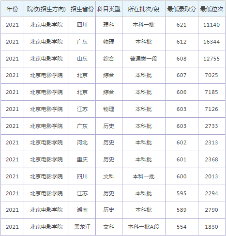 想要報(bào)考北京電影學(xué)院的同學(xué),都比較關(guān)注北京電影學(xué)院2022年的錄取分?jǐn)?shù)線,那么,高考多少分可以上北京電影學(xué)院呢?北京電影學(xué)院歷年最低錄取分?jǐn)?shù)線是多少?下面為大家整理了北京電影學(xué)院錄取分?jǐn)?shù)線2022是多少分(含2021-2022歷年),希望對大家有所幫助,僅供參考。![]() 北京電影學(xué)院錄取分?jǐn)?shù)線2022是多少分? 截止到目前,北京電影學(xué)院2022年錄取分?jǐn)?shù)線還未公布,如果需要2022年北京電影學(xué)院分?jǐn)?shù)線的同學(xué),不妨參考2021年北京電影學(xué)院錄取分?jǐn)?shù)線和北京電影學(xué)院歷年錄取分?jǐn)?shù)線,希望對大家有所幫助,如有不同,請以北京電影學(xué)院官網(wǎng)最新公布的信息為準(zhǔn)。 2021北京電影學(xué)院錄取分?jǐn)?shù)線 ![]() ![]() 北京電影學(xué)院是幾本? 北京電影學(xué)院在北京是本科一批招生,我們通常認(rèn)為北京電影學(xué)院是一本大學(xué)。 ![]() 北京電影學(xué)院簡介 北京電影學(xué)院(Beijing Film Academy),是北京市人民政府、國家新聞出版廣電總局和中華人民共和國教育部共建的藝術(shù)高校,中國政府獎學(xué)金來華留學(xué)生接收院校,國際電影電視高等院校聯(lián)合會(CILECT)理事學(xué)校和亞太地區(qū)電影年會執(zhí)行主席,首家主持國家“863”項(xiàng)目的藝術(shù)院校,教育部本科教學(xué)工作水平評估優(yōu)秀學(xué)校,北京市留學(xué)生教學(xué)管理先進(jìn)單位,2018中國科幻大會優(yōu)秀組織單位,是國家動畫教育研究基地、北京影視藝術(shù)研究基地和中國兒童電影研究中心的掛牌單位。 北京電影學(xué)院的前身是1950年創(chuàng)建的中央電影局表演藝術(shù)研究所。該所1951年更名為中央文化部電影局電影學(xué)校,1953年更名為北京電影學(xué)校,1956年改制為北京電影學(xué)院。 通過對北京電影學(xué)院錄取分?jǐn)?shù)線的了解,大家大概知道了高考多少分可以上北京電影學(xué)院,以上數(shù)據(jù)源于網(wǎng)絡(luò),僅供參考,大家如果想要了解其他大學(xué)錄取分?jǐn)?shù)線、大學(xué)簡介、大學(xué)排行榜、專業(yè)選擇等內(nèi)容,請點(diǎn)擊訪問:大學(xué)欄目。 推薦閱讀: 西安交通大學(xué)錄取分?jǐn)?shù)線 浙江大學(xué)錄取分?jǐn)?shù)線 中國農(nóng)業(yè)大學(xué)錄取分?jǐn)?shù)線 哈爾濱工業(yè)大學(xué)錄取分?jǐn)?shù)線 北京師范大學(xué)錄取分?jǐn)?shù)線 中央民族大學(xué)錄取分?jǐn)?shù)線 |