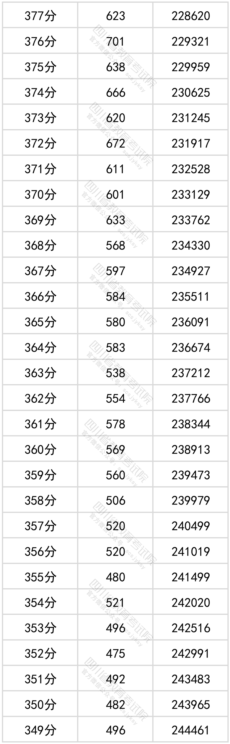 為了幫助大家全面了解2022年四川高考成績排名情況,下面我們?yōu)榇蠹艺砹?strong>2022年四川高考一分一段表,這樣,大家就能對自己2022的高考成績有更直觀的了解,知道自己高考成績排名是怎樣的?在四川處于什么位置,為接下來的志愿填報做到心里有數(shù)。![]() 點擊下一頁,了解2021年四川高考一分一段表 2022年四川高考一分一段表
