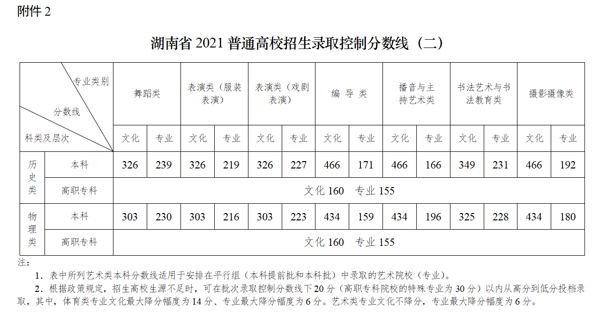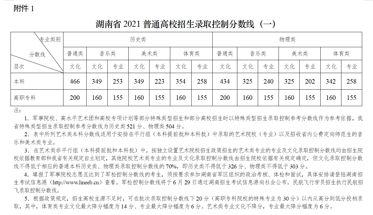 2021年湖南高考錄取分?jǐn)?shù)線一覽表