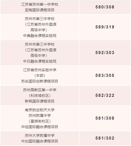 相信有不少考生都想盡早知道2023年蘇州市中考錄取分?jǐn)?shù)線(xiàn)是多少,為了讓考生能第一時(shí)間獲取到2023年蘇州市中考錄取分?jǐn)?shù)線(xiàn)的相關(guān)內(nèi)容,特整理本文,希望可以幫助到大家,數(shù)據(jù)源于網(wǎng)絡(luò),僅供參考。![]() 2023年蘇州市中考錄取分?jǐn)?shù)線(xiàn) 鑒于目前還不清楚2023年蘇州市中考錄取分?jǐn)?shù)線(xiàn)是多少,我們?yōu)榇蠹艺沓隽?022年蘇州中考錄取分?jǐn)?shù)線(xiàn),等到官方公布后,我們會(huì)將2023年蘇州市中考錄取分?jǐn)?shù)線(xiàn)相關(guān)內(nèi)容更新到這里,為大家提供參考。 2022年蘇州中考分?jǐn)?shù)線(xiàn)是多少? 江蘇蘇州太倉(cāng)市各類(lèi)高級(jí)中等學(xué)校錄取分?jǐn)?shù)線(xiàn) 現(xiàn)代職教“5+2”“3+4”本科項(xiàng)目 1.蘇州建設(shè)交通高等職業(yè)技術(shù)學(xué)校-蘇州城市學(xué)院“5+2”城市軌道車(chē)輛應(yīng)用技術(shù)投檔分?jǐn)?shù)線(xiàn)為553分、且文化總分需在503分及以上且語(yǔ)數(shù)外在305分及以上。 2.蘇州建設(shè)交通高等職業(yè)技術(shù)學(xué)校-蘇州城市學(xué)院“5+2”環(huán)境藝術(shù)設(shè)計(jì)投檔分?jǐn)?shù)線(xiàn)為554分、且文化總分需在504分及以上且語(yǔ)數(shù)外在297分及以上。 3.蘇州旅游與財(cái)經(jīng)高等職業(yè)技術(shù)學(xué)校-蘇州科技大學(xué)“3+4”物流服務(wù)與管理投檔分?jǐn)?shù)線(xiàn)為554分、且文化總分需在504分及以上且語(yǔ)數(shù)外在300分及以上。 第二批次 1.太倉(cāng)市華頓外國(guó)語(yǔ)學(xué)校投檔分?jǐn)?shù)線(xiàn)為540分。 2.江蘇省太倉(cāng)中等專(zhuān)業(yè)學(xué)校綜合高中(職教高考)班投檔分?jǐn)?shù)線(xiàn)為530分。 蘇州市姑蘇區(qū)、工業(yè)園區(qū)、高新區(qū)普通高中錄取分?jǐn)?shù)線(xiàn) 根據(jù)2022年蘇州市姑蘇區(qū)、工業(yè)園區(qū)、高新區(qū)普通高中招生計(jì)劃及普通高中自主招生最低控制分?jǐn)?shù)線(xiàn)劃線(xiàn)規(guī)則,自主招生最終控制線(xiàn)為 598分 凡自主招生綜合評(píng)價(jià)合格,中考成績(jī)達(dá)到姑蘇區(qū)、工業(yè)園區(qū)、高新區(qū)普通高中自主招生控制線(xiàn)的考生,自主招生學(xué)校將按公示名單先后順序,采用綜合排名優(yōu)先、考生自主選擇、按照計(jì)劃進(jìn)行錄取。 被蘇州中學(xué)“匡亞明”實(shí)驗(yàn)班預(yù)錄取的考生應(yīng)于6月29日12:00~6月30日12:00之間到學(xué)校報(bào)到。 被其他自主招生學(xué)校預(yù)錄取的考生(含省蘇州十中“國(guó)科大創(chuàng)新實(shí)驗(yàn)班”,省蘇州實(shí)驗(yàn)中學(xué)“中科創(chuàng)新實(shí)驗(yàn)班”“南大軟件工程實(shí)驗(yàn)班”,蘇大附中“費(fèi)孝通班”,省蘇州十中金閶校區(qū)“國(guó)科大創(chuàng)新實(shí)驗(yàn)班”,西安交大蘇州附屬中學(xué)“納米科學(xué)人才實(shí)驗(yàn)班”,星海實(shí)驗(yàn)中學(xué)“生命科學(xué)課程實(shí)驗(yàn)班”,南航蘇州附屬中學(xué)“飛行員課程基地班”),應(yīng)于7月1日17:00之前,根據(jù)相關(guān)學(xué)校通知到自主招生錄取學(xué)校報(bào)到,辦理錄取手續(xù)。 凡綜合排名較后而未被錄取的考生以及規(guī)定時(shí)間未到相關(guān)學(xué)校報(bào)到的考生,按照本人填報(bào)的中考志愿進(jìn)入志愿錄取流程。 注:姑蘇區(qū)普通高中即市教育局直屬高中。 蘇州外國(guó)語(yǔ)學(xué)校高中部錄取分?jǐn)?shù)線(xiàn) 創(chuàng)新班全免691分 強(qiáng)基班半免685分 高中國(guó)際班660分 蘇州太倉(cāng)市提前批中考錄取分?jǐn)?shù)線(xiàn) 江蘇省太倉(cāng)高級(jí)中學(xué)體育類(lèi)特長(zhǎng)生錄取分?jǐn)?shù)線(xiàn)為中考總分619分,學(xué)科類(lèi)特長(zhǎng)生錄取分?jǐn)?shù)線(xiàn)為中考總分619分,科技類(lèi)特長(zhǎng)生錄取分?jǐn)?shù)線(xiàn)為中考總分619分。江蘇省沙溪高級(jí)中學(xué)科技類(lèi)特長(zhǎng)生錄取分?jǐn)?shù)線(xiàn)為中考總分591分,且綜合分?jǐn)?shù)657.6分及以上;江蘇省沙溪高級(jí)中學(xué)音樂(lè)類(lèi)特長(zhǎng)生錄取分?jǐn)?shù)線(xiàn)為中考總分576分,且專(zhuān)業(yè)測(cè)試成績(jī)83.5分及以上;江蘇省沙溪高級(jí)中學(xué)美術(shù)類(lèi)特長(zhǎng)生錄取分?jǐn)?shù)線(xiàn)為中考總分563分,且綜合分?jǐn)?shù)631.3分及以上。 蘇州幼兒師范高等專(zhuān)科學(xué)校—常熟理工學(xué)院“5+2”學(xué)前教育錄取分?jǐn)?shù)線(xiàn)為620分,蘇州幼兒師范高等專(zhuān)科學(xué)校五年制學(xué)前教育錄取分?jǐn)?shù)線(xiàn)為597分。 蘇州昆山市中考錄取分?jǐn)?shù)線(xiàn) ![]() ![]() 蘇州相城區(qū)中招錄取分?jǐn)?shù)線(xiàn)(一) 01、蘇州中學(xué)相城實(shí)驗(yàn)項(xiàng)目 ![]() ![]() 03、師范教育類(lèi) ![]() 說(shuō)明:若考生中考總分等于錄取分?jǐn)?shù)線(xiàn)的總分時(shí),需要比對(duì)語(yǔ)數(shù)英成績(jī);若考生中考總分高于錄取分?jǐn)?shù)線(xiàn)的總分,則不需要比對(duì)語(yǔ)數(shù)英成績(jī),直接錄取。 蘇州相城區(qū)中招錄取分?jǐn)?shù)線(xiàn)(二) 01、四星級(jí)高中指標(biāo)生(全區(qū)最低分?jǐn)?shù)控制線(xiàn)601分) ![]() 02、四星級(jí)高中統(tǒng)招、望亭中學(xué)風(fēng)華班 ![]() 03、現(xiàn)代職教3+4、5+2